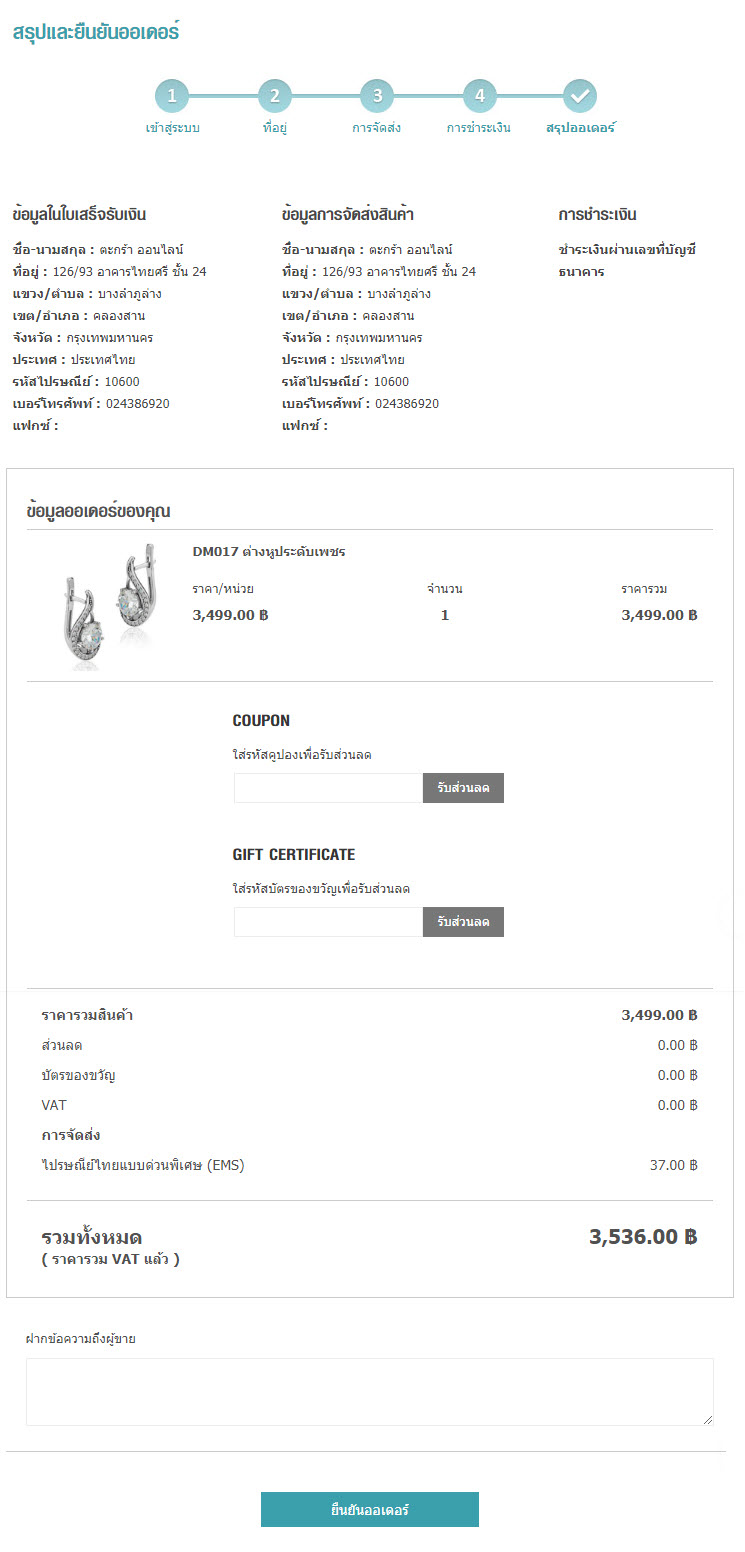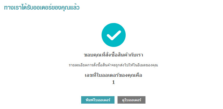 หมายเหตุ ระบบจะมีการส่งอีเมลสรุปข้อมูลการสั่งซื้อไปให้ท่านและร้านค้า เพื่อให้ทางร้านรับทราบออเดอร์และดำเนินการจัดส่งสินค้าต่อไป